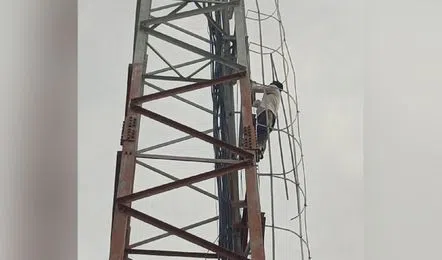 In a dramatic incident in Sangareddy district, a 28-year-old man climbed a mobile tower in Jogipet on Saturday, alleging that ₹4,000 kept in his pocket had been stolen. The amount was reportedly given to him a day earlier ahead of voting.