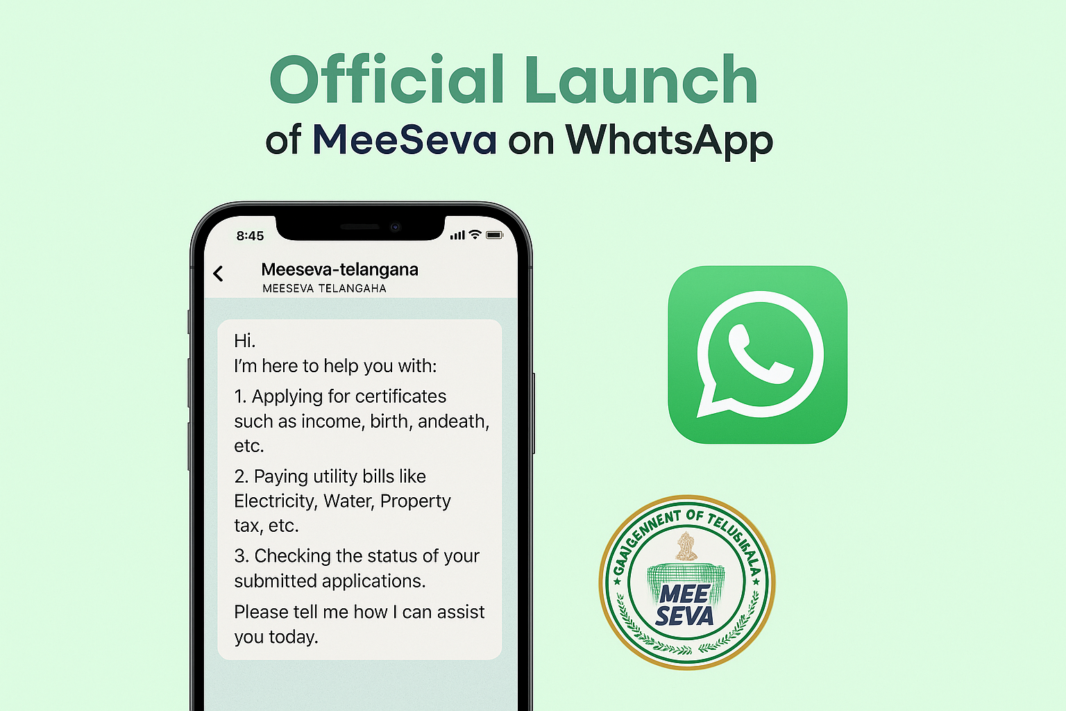Telangana launches MeeSeva on WhatsApp, enabling citizens to access services like certificate applications, bill payments, and application status checks through a secure, chat-based platform. This initiative aims to make public services faster, more convenient, and accessible to every household.
